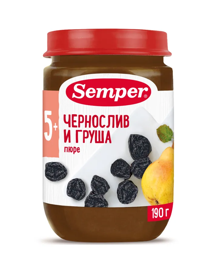 Пюре Semper Чернослив-груша с 5 мес 190 г
