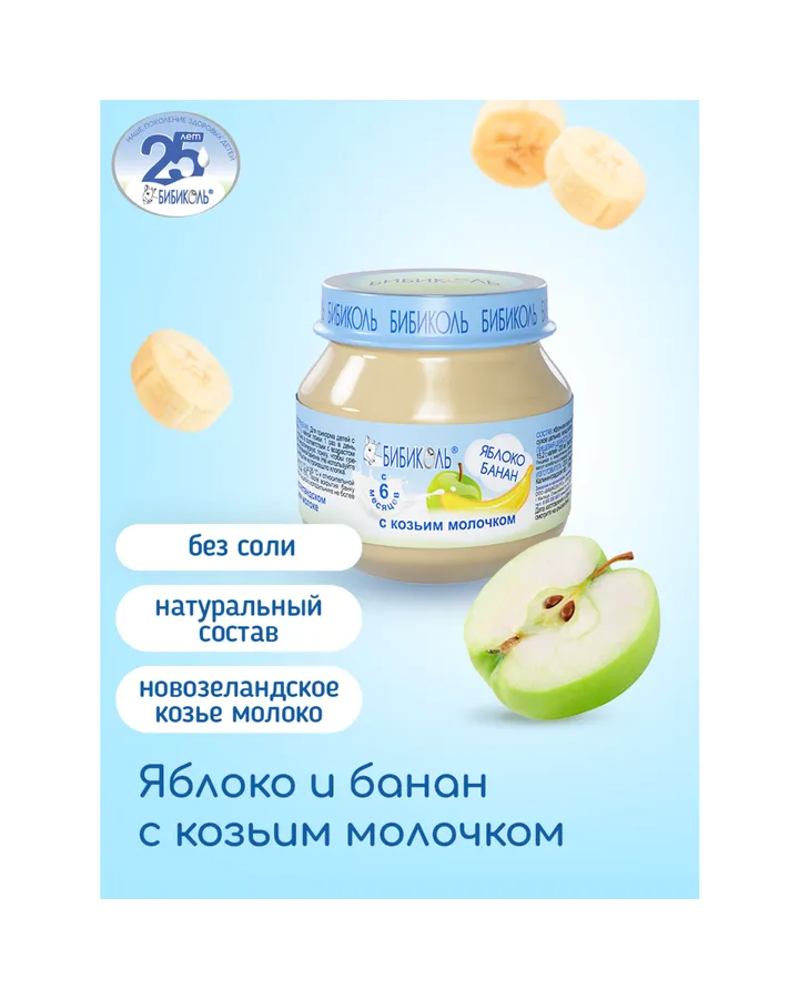 Пюре Бибиколь Яблоко-банан-козье молочко с 6 мес 80 г