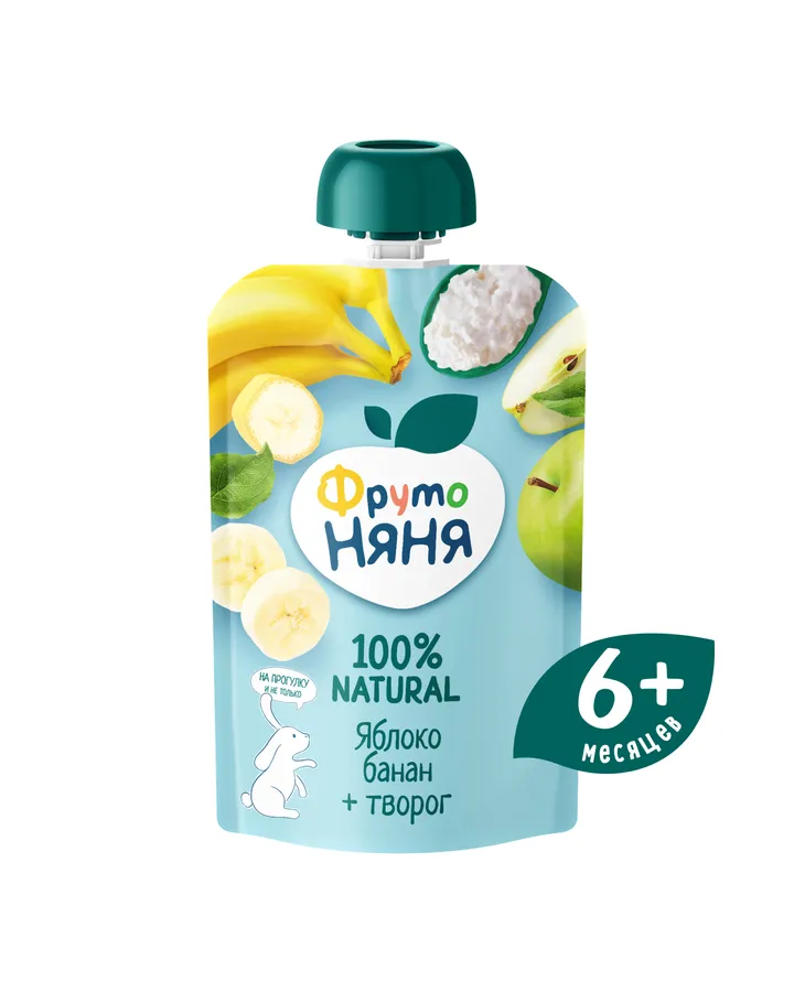 Пюре ФрутоНяня Яблоко с бананом и творогом с 6 мес 90 г