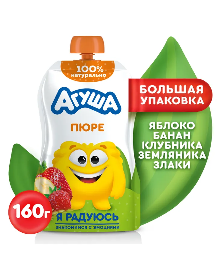 Пюре Агуша Яблоко-банан-клубника-земляника-злаки с 8 мес 160 г