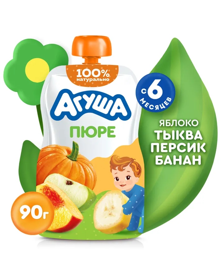Пюре Агуша Яблоко-тыква-персик-банан с 6 мес 90 г