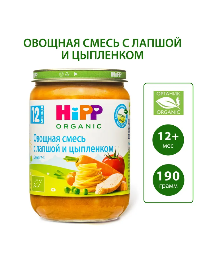 Пюре Hipp Овощная смесь с лапшой и цыпленком с 12 мес 190 г