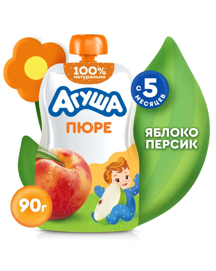 Пюре Агуша Яблоко-персик с 5 мес 90 г