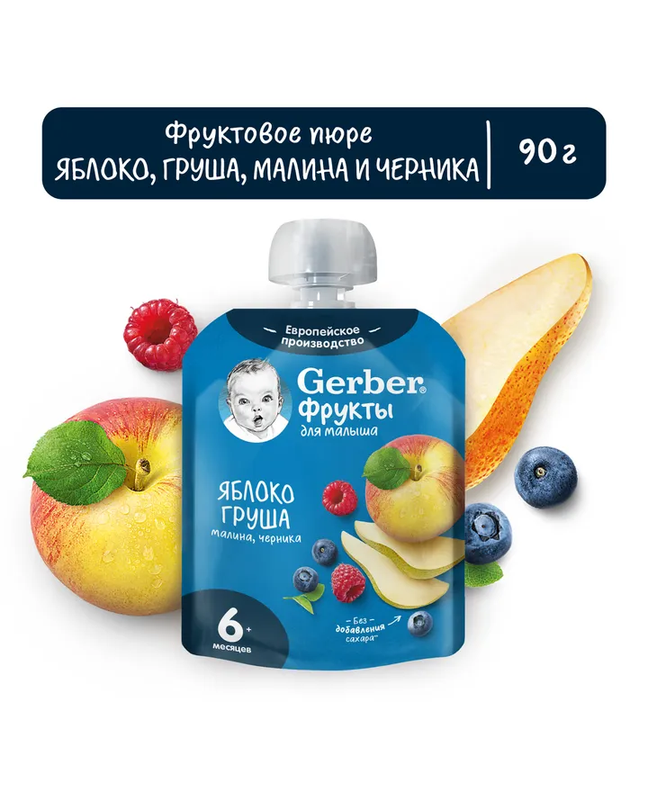 Пюре Gerber Яблоко-груша-малина-черника с 6 мес 90 г