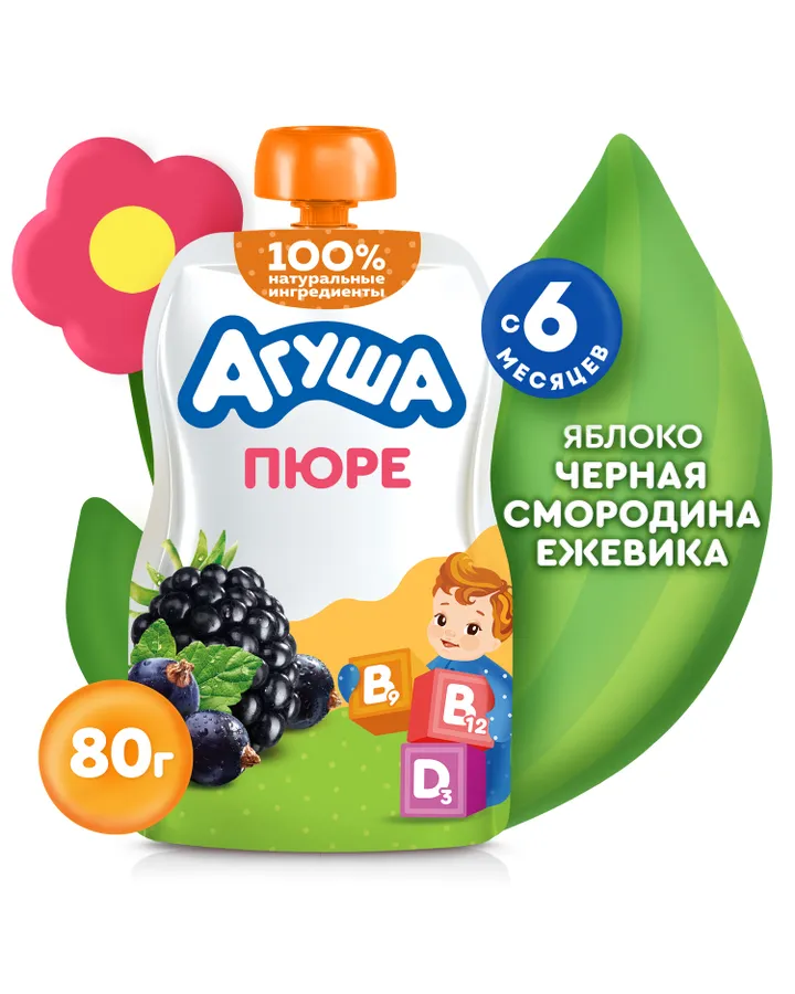 Пюре Агуша Яблоко-черная смородина-ежевика с 6 мес 80 г
