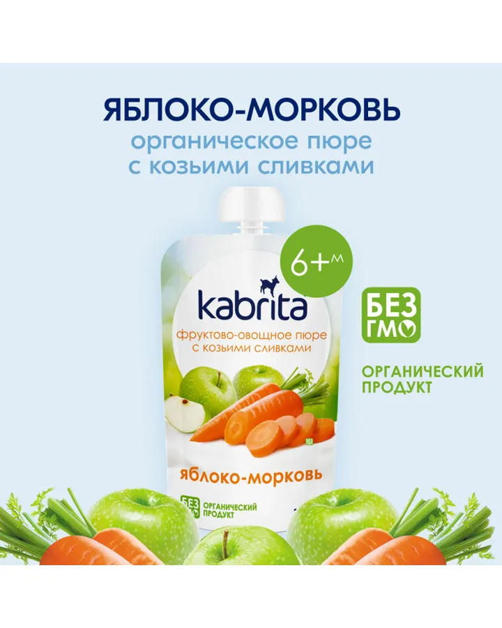 Пюре Kabrita Яблоко-морковь с козьими сливками с 6 мес 100 г