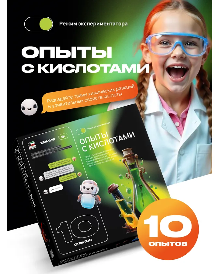 Набор для опытов Attivio Опыты с кислотами 10 опытов