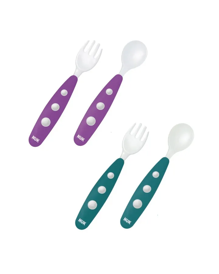 Набор посуды Nuk 2 предм. в ассортиментеРебенок только этими приборами и ест все время. Уже пора переходить на взрослые, а он не хочет, вот так сильно ему понравились эти. :)