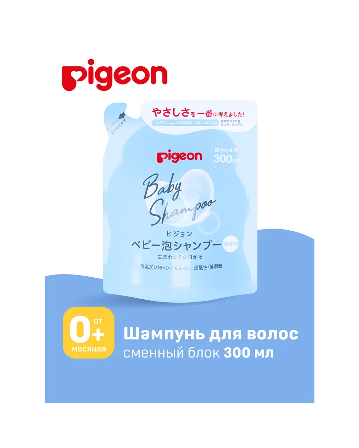 Шампунь Pigeon 350 млУдобный дозатор, ребекок моется с удовольствием, не плачет даже, когда попадает в глаза, нет резких и сильных запахов, небольшой расход. Хорошо пениться.