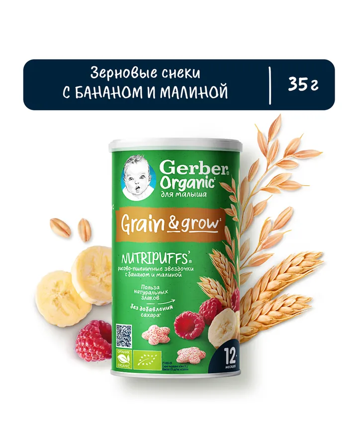 Воздушные снеки Gerber Звёздочки банан-малина с 12 мес 35 г
