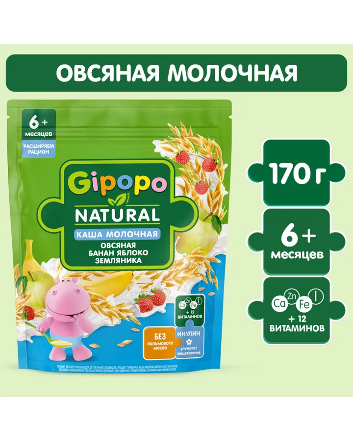 Каша Gipopo молочная овсяная банан-яблоко-земляника 170г с 6месяцев