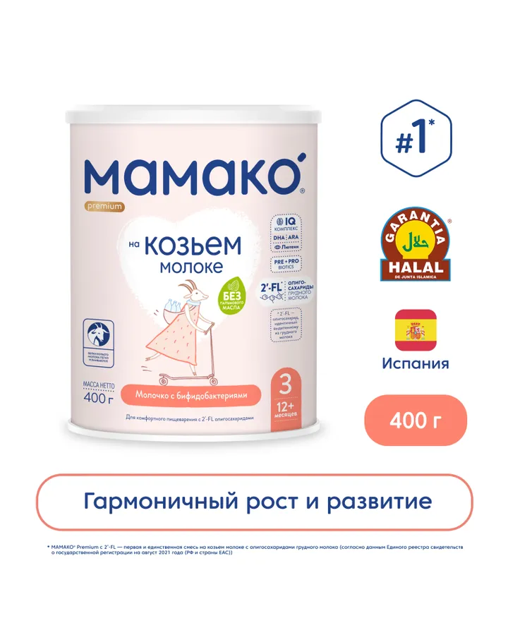 Смесь Мамако 1 Premium на козьем молоке 800г с 0месяцевОтличный состав у этой смеси , ребенок с 2 месяцев кушает отлично , спит прекрасно , ни чего не беспокоит👌
