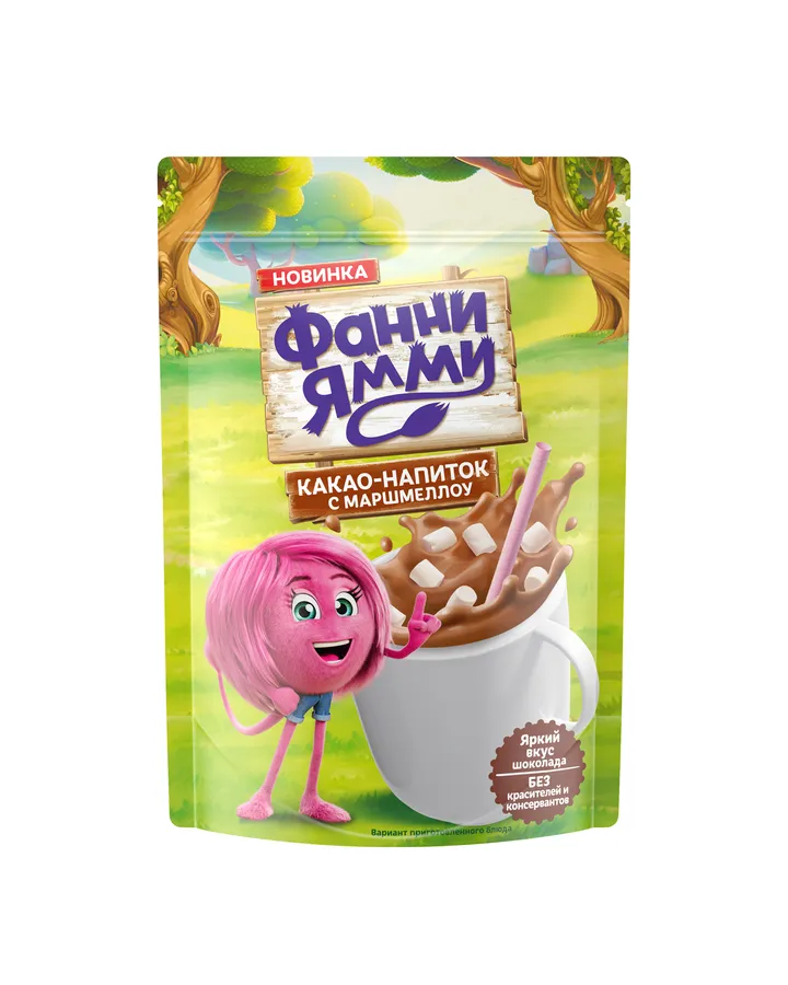 5Какао-напиток Фанни Ямми быстрорастворимый с маршмеллоу 160гХорошее какао, растворяется полностью, нет осадка