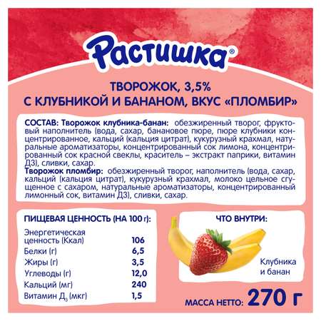 Творог Растишка клубника-банан-пломбир 6*45г c 3лет