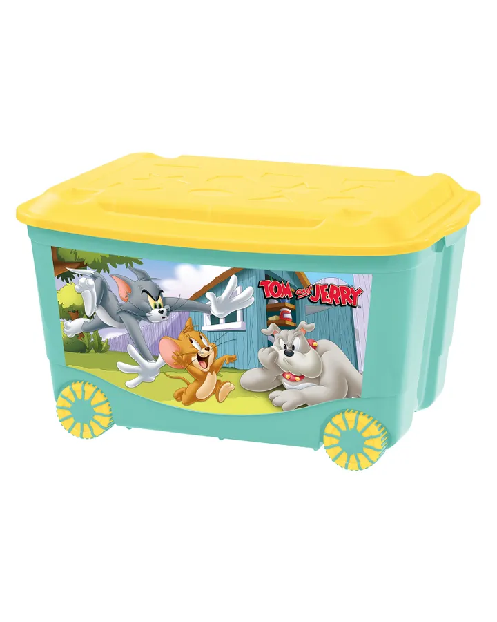 Ящик для игрушек Пластишка Tom and Jerry на колесах с аппликацией Бирюзовый