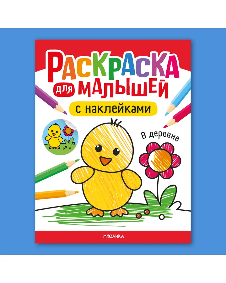 Книга МОЗАИКА kids Раскраска для малышей с наклейками В деревне