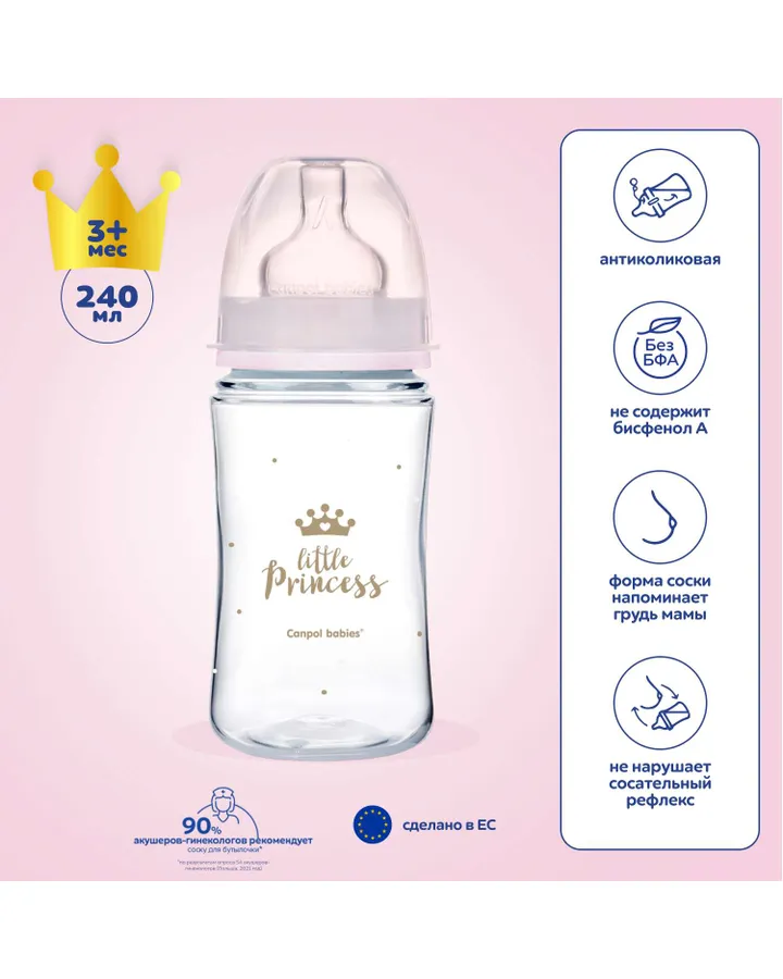 Бутылочка Canpol Babies Anti-Colic 240 млБутылочка очень хорошая,малышу понравилась, очень удобно держать и мама и малышу. Немного сделали дырочку больше так как брали для густых каш,покупкой довольна,закажу ещё