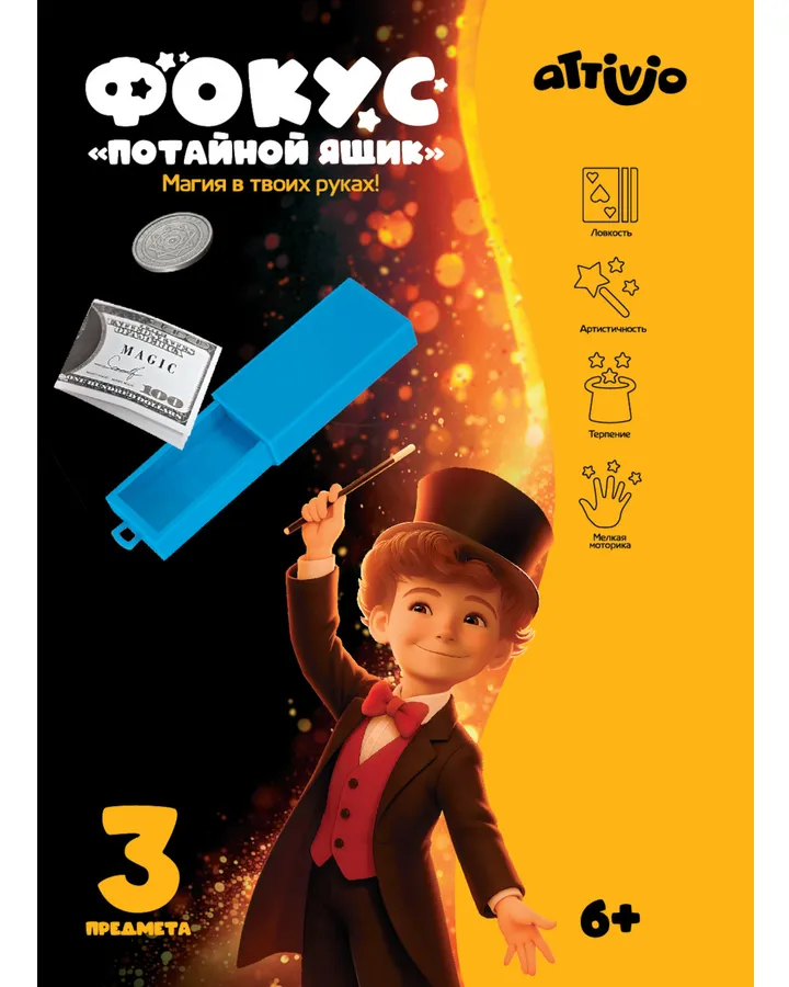 5Фокусы Attivio 57 предметовБрали в подарок 6-летке. Ребенок сам разобрался, только инструкцию взрослые прочитали.