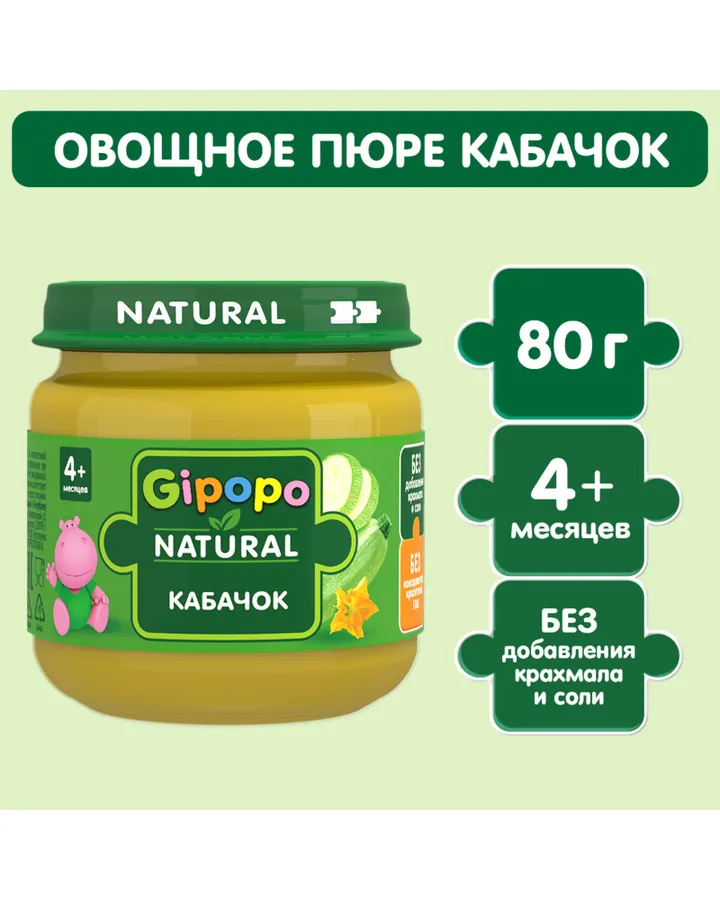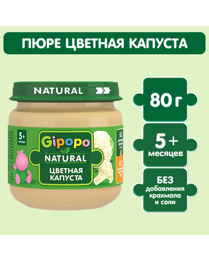 Пюре Gipopo Цветная капуста с 5 мес 80 гКачественное и вкусное пюре, идеально для первого прикорма