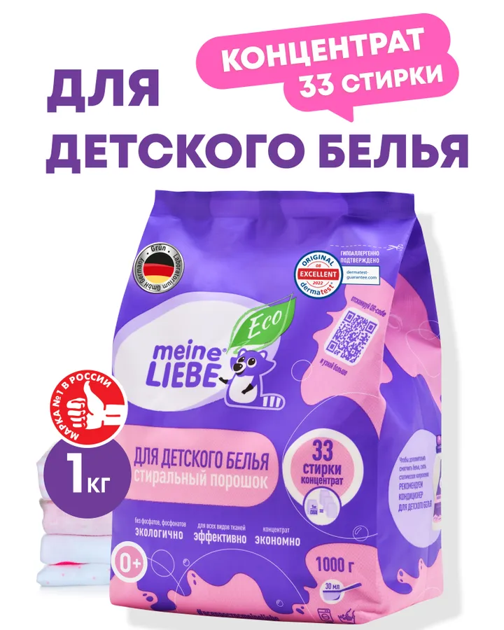 Стиральный порошок Meine Liebe Детский 1 кгПокупала несколько разновидности этого производителя. Мнение двоякое. Это очень понравился, рекомендую.