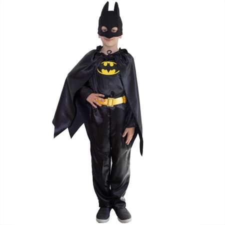 В комплект входит комбинезон с эмблемой Бэтмена, маска и плащ.