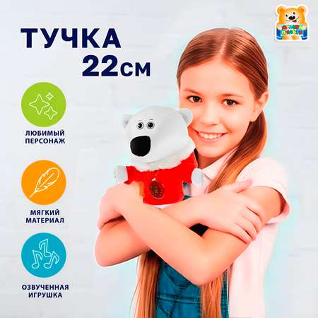 Любимый герой известного мультика Мимимишки — мягкая интерактивная игрушка Белая Тучка. Медвежонок одет в яркую зимнюю кофточку.