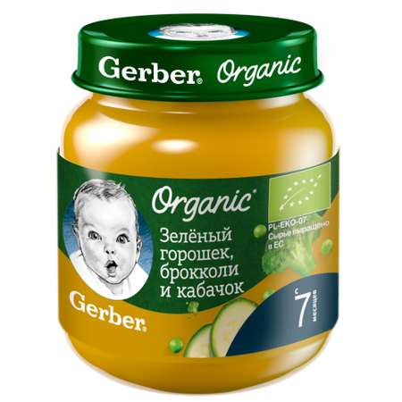 Пюре Gerber зеленый горошек-брокколи и кабачок 125г с 7месяцев