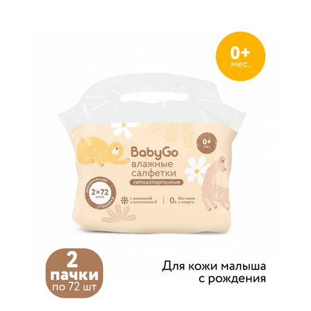 Салфетки влажные BabyGo с ромашкой и витамином Е 2*72шт 30895
