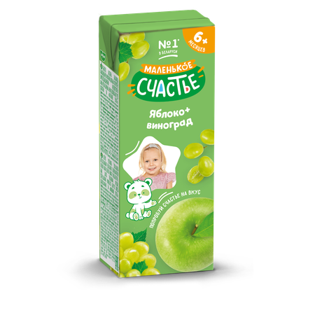 Цена на Сок Маленькое счастье Яблоко-Виноград с 6 мес 0.2 л - 279 ₸.