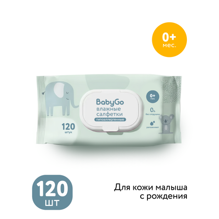 Цена на Влажные салфетки BabyGo 120 шт. - 990 ₸.
