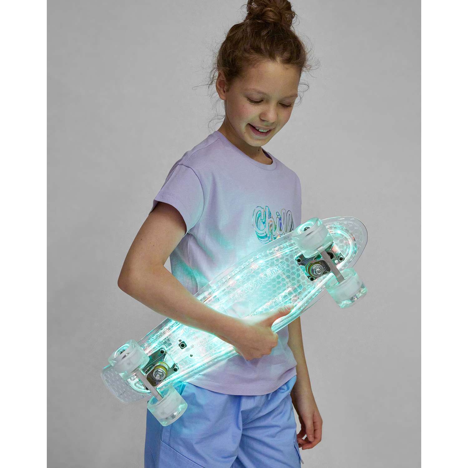 - отличный скейтборд. Ребенку очень понравилось. светится. Зарядки на прогулку хватает. Колеса светятся при движении. написано что выдерживает 100 кг. Во мне 80. Немного прогибается. Побоялся кататься. А ребенку все нормально. Колеса крутятся хорошо. В общем товар рекомендую.