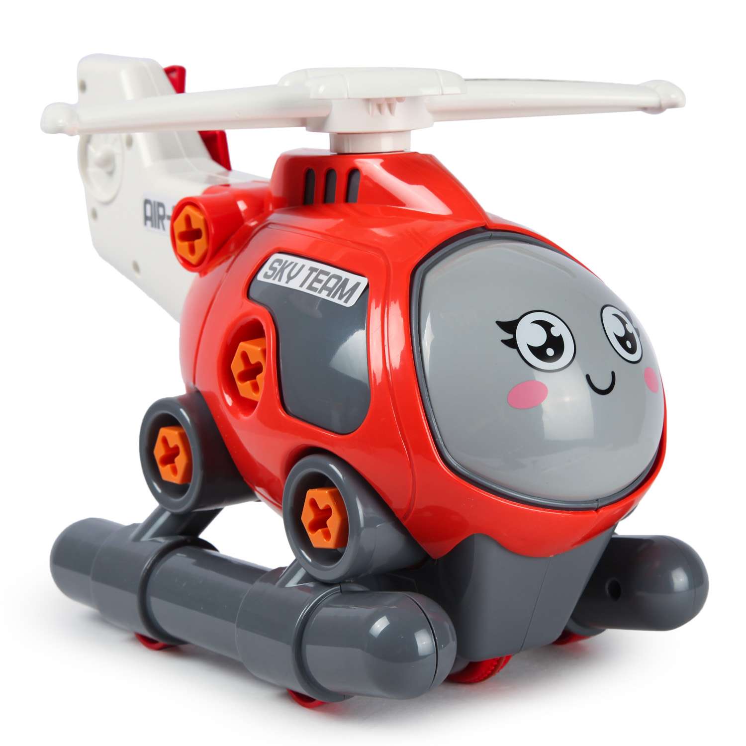 Вертолёт оснащён подвижными деталями и легко собирается благодаря пластиковым винтам. С помощью дрели ваш ребёнок сможет разобрать игрушку и снова собрать её по своему желанию.
