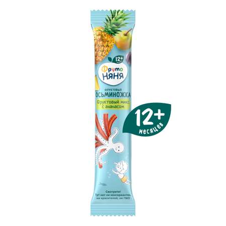 Фруктовый осьминожка фруктовый микс с ананасом от ФрутоНяня — это вкусное и полезное лакомство для малышей старше 12 месяцев. В составе натуральные соки и пюре фруктов и ягод без добавления сахара. Увлекательная форма фруктового осьминожки разработана специально для маленьких пальчиков и способствует развитию мелкой моторики. Лакомство удобно положить в детский рюкзачок и взять с собой на прогулку благодаря удобной упаковке.