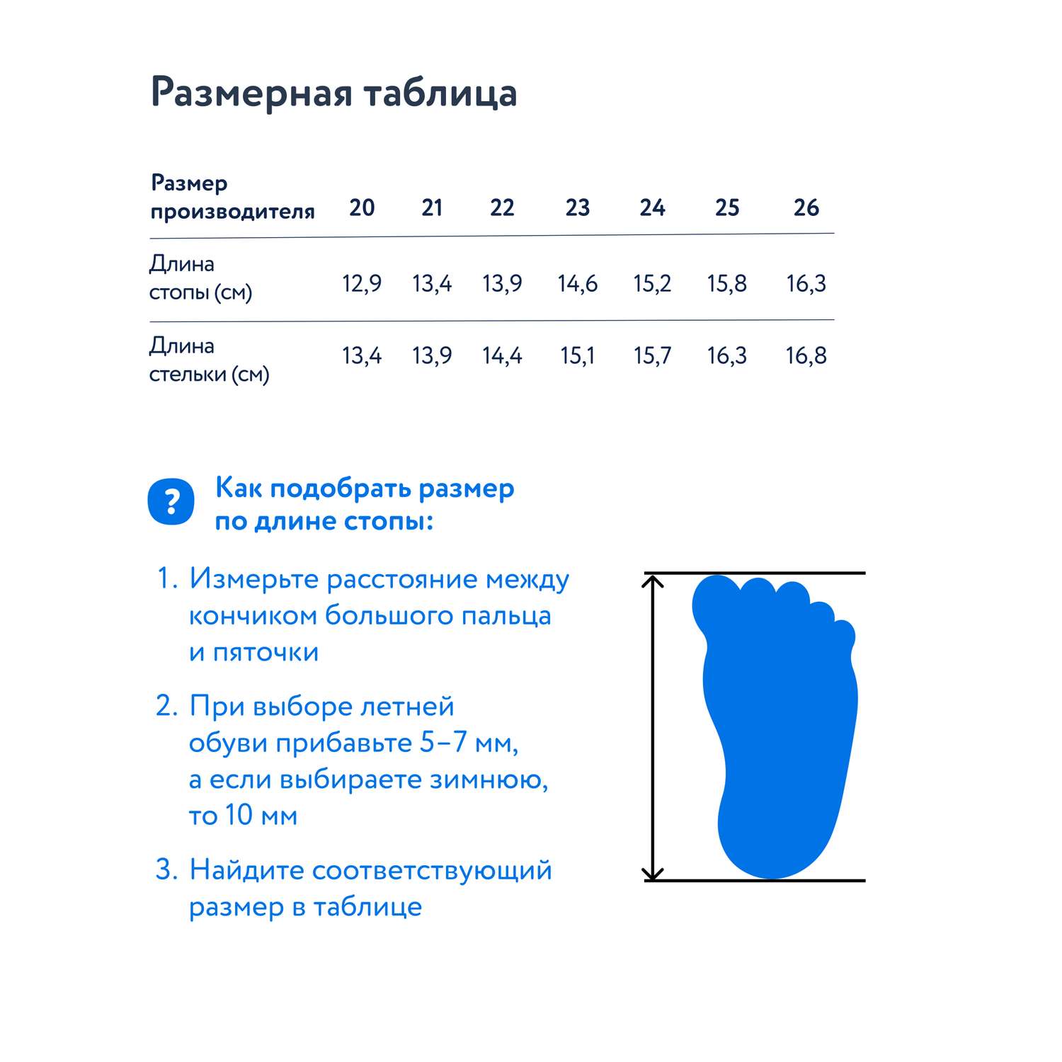 Обращаем Ваше внимание, что правильное определение размера детской обуви напрямую зависит от индивидуальных особенностей ребёнка.