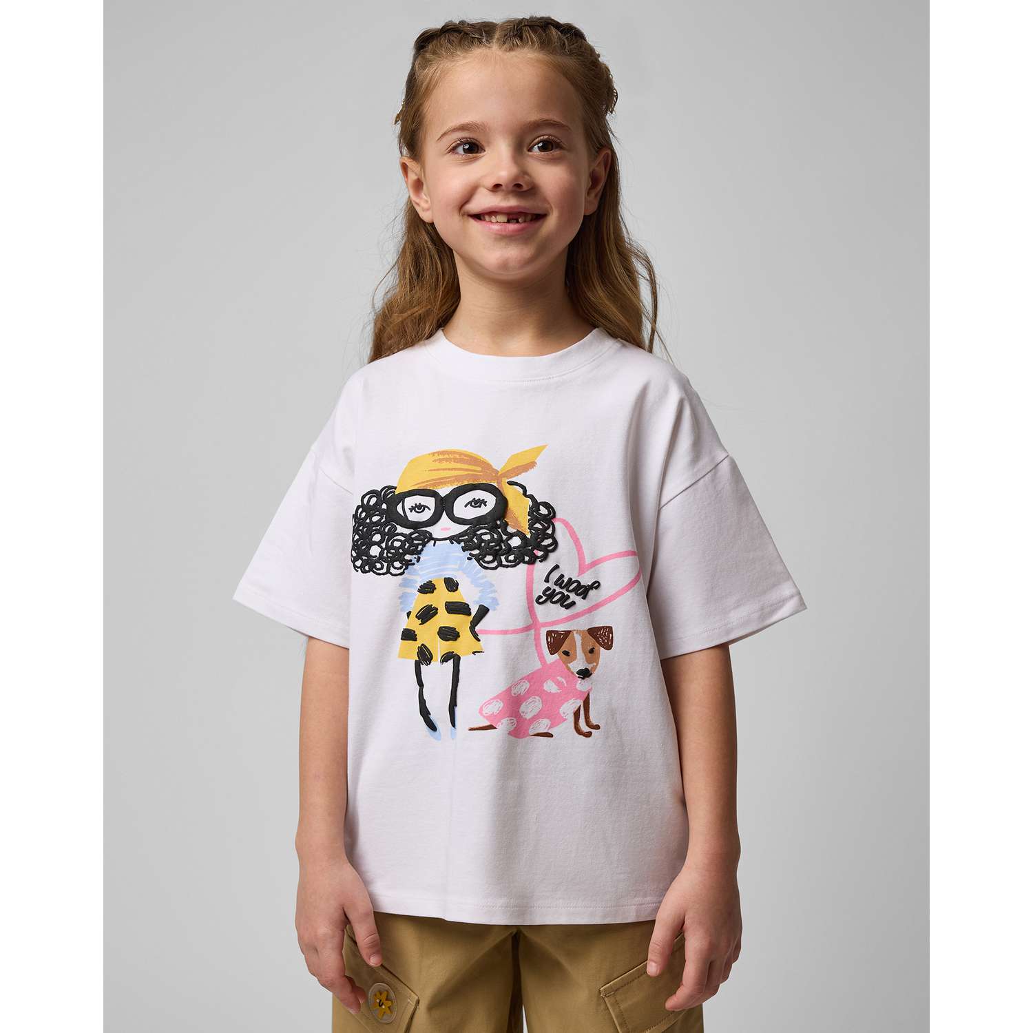 - Сам материал футболки классный, качественная приятная ткань. Единственное, что не понравилось, это материал из которого выполнены волосы и очки дамы, прорезиненый, выпуклый, не приятный. В целом принт качественный. Оставим на вырост, нам на рост 111см размер 122 велик, замеры на фото, кому нужно.