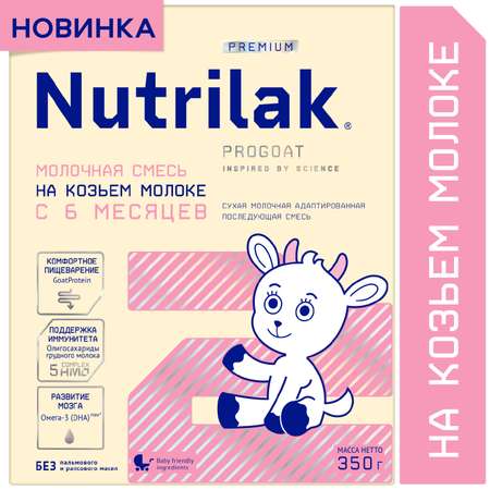 Nutrilak 2 Premium PROGOAT* произведен на основе отборного козьего молока, способствует комфортному пищеварению и развитию иммунной системы, имеет сбалансированный состав для полноценного роста и интеллектуального развития малыша.