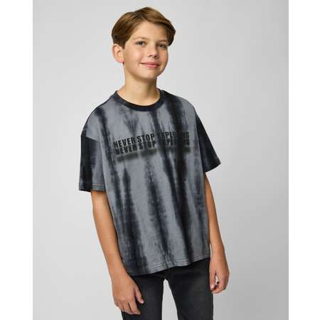 Футболка для мальчика Futurino с принтом тай-дай и надписями.