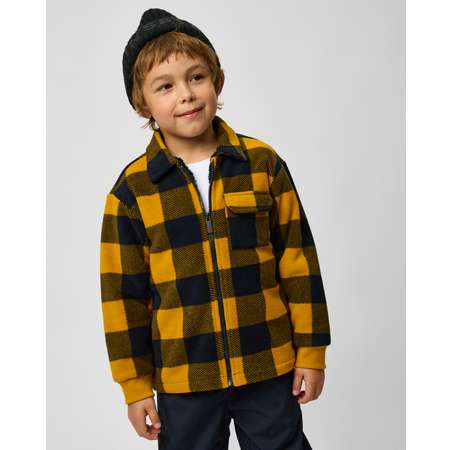 Утеплённая куртка-рубашка для мальчика Futurino в клетку горчичного цвета.