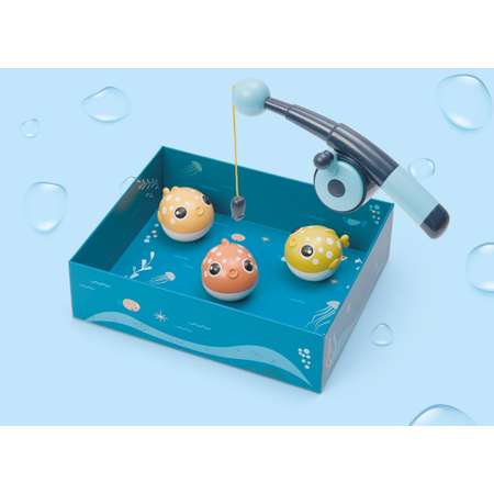 Всё работает без батареек — простая и понятная механика. Стоит только крутить ручку по часовой стрелке — и фигурка попадётся на крючок. В наборе — три яркие рыбки, удобная удочка и бассейн. Можно играть как в ванной, так и прямо в комнате.