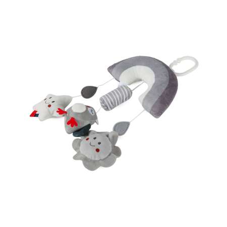 На подвеске четыре милые игрушки. Их можно мять, трогать, рассматривать — всё сделано из мягких и безопасных материалов. Игрушка не только увлекает, но и помогает ребёнку узнавать мир через цвета, звуки и прикосновения.