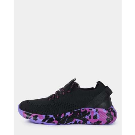 Чёрные текстильные кроссовки для девочки Jomoto с яркой цветной подошвой.