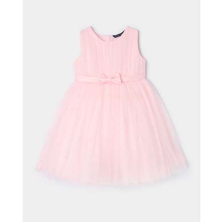 Праздничное платье для девочки Orsolini в розовом цвете с пышной юбкой, декорированной блёстками. Спереди линия талии украшена лентой с декоративным бантиком.
