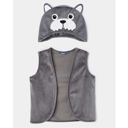 Велюровый карнавальный костюм для мальчика Grimmo "Волк" из двух предметов: жилета и шапочки с ушками.