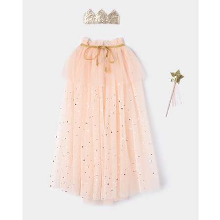 Карнавальный костюм для девочки "Принцесса " от Grimmo в виде комплекта из розовой мантии с блёстками-звёздочками, повязки в виде золотистой короны и волшебной палочки.