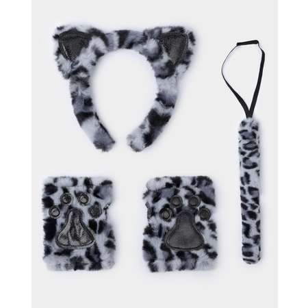 Карнавальный костюм для девочки Grimmo "Снежный барс" из трёх предметов: мягкого ободка с ушками, пары митенок и хвостика на резинке.
