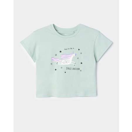 Мятная футболка для девочки Futurino, декорированная принтом с единорогом.