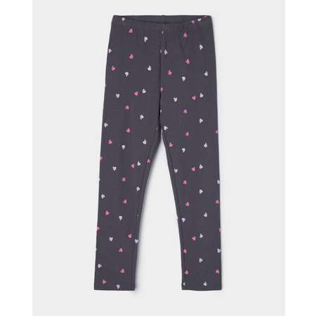 Тёмно-серые легинсы для девочки Futurino, декорированные принтом с сердечками.