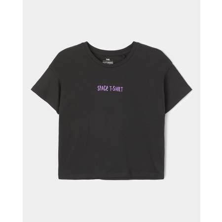 Чёрная футболка для девочки Futurino с однотонным принтом "Space T-Shirt".