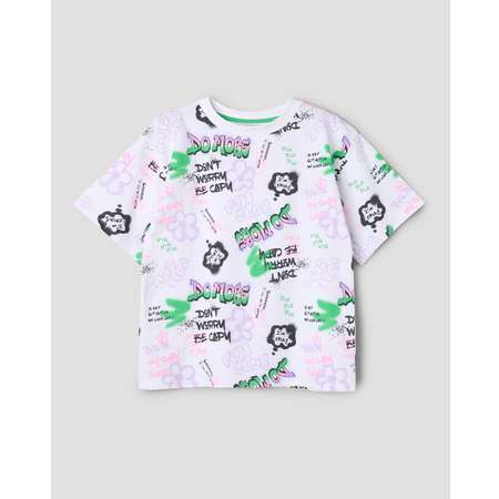 Белая футболка для девочки Futurino с ярким притом в стиле граффити.