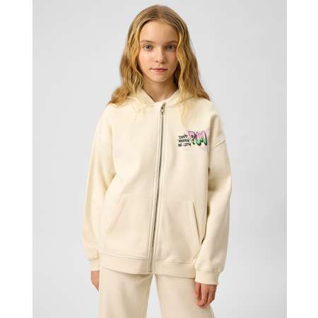 Толстовка для девочки Futurino молочного цвета с принтом в стиле граффити.